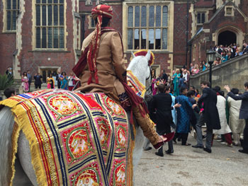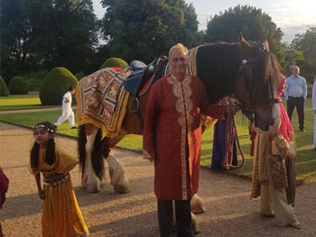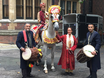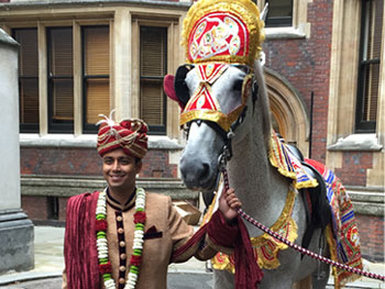 At TW Carriages, we take great pride in the detail and will provide you with the most well behaved, beautifully adorned white horse. Your Ghodi will wear a one-of-a-kind, hand-made costume complete with ghungroo (anklets) and morki (crown). With matching umbrella and handlers dressed in traditional garb, we aim to make your Baraat like no other.